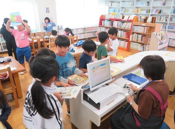 5/29 図書館の利用 公開日 2025/05/29 更新日 2025/05/29 できごと 3年生は、図書館を利用して、本を予約したり、借りたりしていました。巡回司書の新井さんから、予約の仕方を教えてもらいました。また、新井さんの好きな本の読み聞かせをしていただきました。