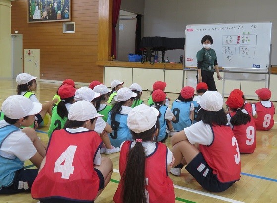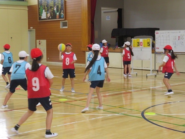 6/3 体育の授業 公開日 2025/06/03 更新日 2025/06/03 できごと 6月3日(火)、3年生は体育「ボール運動」で、「じゃまじゃまゲーム」に挑戦していました。 グループに分かれて、相手の動きをよく見ながら仲間にパスをして、ゴールをねらいました。