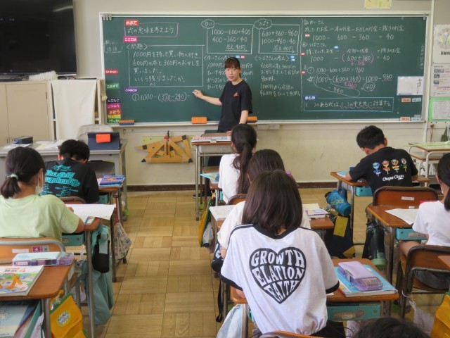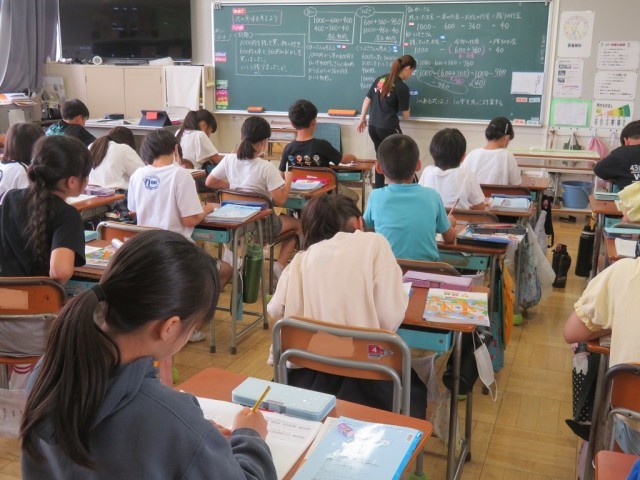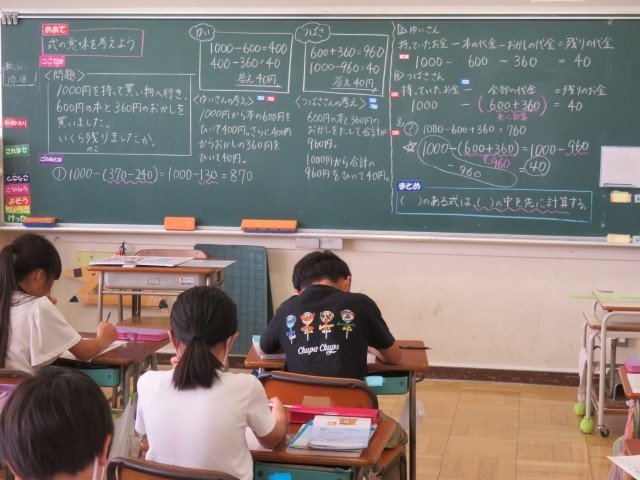 4年生は、算数「式の意味を考えよう」で、カッコを使った式について、計算の順序を話し合っていました。