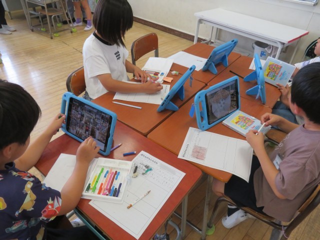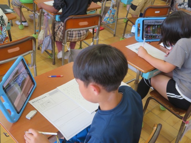 6/19 生活科の授業 公開日 2025/06/19 更新日 2025/06/19 できごと 2年生は、生活科「町たんけん」で、タブレットで撮った写真をもとに、気付いたことを自分の言葉でまとめていました。