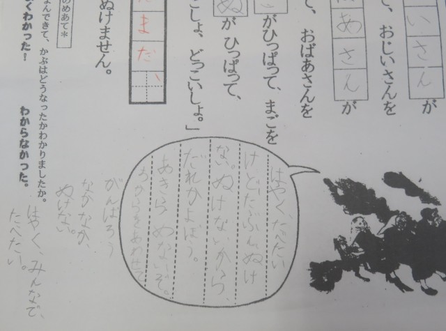 6/25 国語の授業 公開日 2025/06/25 更新日 2025/06/25 できごと 6月25日(水)、1年生は、国語「大きなかぶ」の読み取りをしていました。 たくさん登場する人の気持ちを話し合っていました。