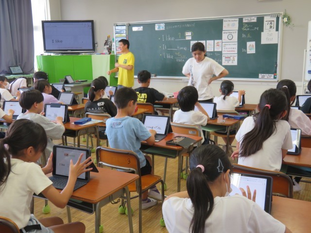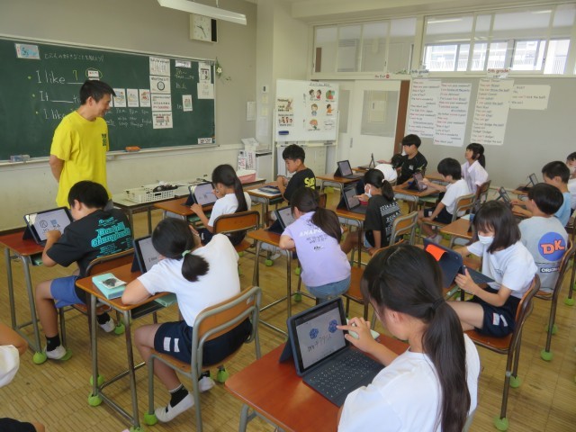 7/1 外国語活動の授業 公開日 2025/07/02 更新日 2025/07/02 できごと 4年生は、外国語活動「自分の好きなことを考えよう」で、「I like ~ 」の英語表現を使って友だち同士で伝え合いました。