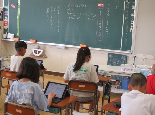 7/1 国語の授業 公開日 2025/07/02 更新日 2025/07/02 できごと 5年生は、国語「みんなが使いやすいデザイン」で、伝えたいことを調べて、タブレットで整理して分かりやすく報告する学習に取り組んでいました。 引用や参考文献など、しっかりと明示することの大切さも意識していました。