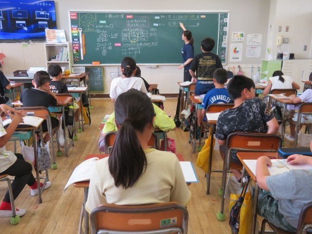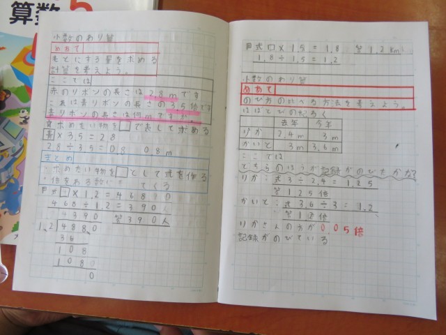 7/1 算数の授業(2) 公開日 2025/07/02 更新日 2025/07/02 できごと 5年生は、算数「小数のわり算」で、データを比較する学習に取り組んでいました。「どちらの記録が伸びたか」をくらべる方法を話し合いました。
