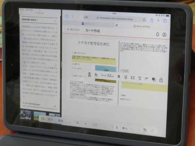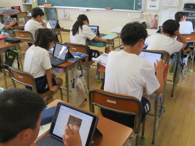 7/3 国語の授業(2) 公開日 2025/07/03 更新日 2025/07/03 できごと 5年生は、国語「みんなが使いやすいデザイン」で、伝えたいことをタブレットで調べて、レポートにまとめていました。 それをみんなで共有することで、工夫したところや、表現の仕方を自分のレポートに取り入れていました。