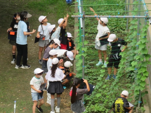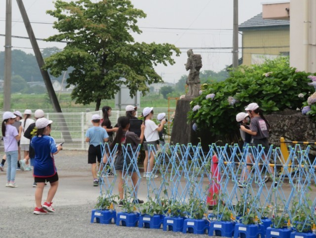 7/7 理科の授業 公開日 2025/07/07 更新日 2025/07/07 できごと 4年生は、理科「暑くなると」で、校庭の樹木や植物、生き物など、春とくらべて変わったところを見つけました。 サクラやあじさい、ヘチマ、つばめなど、気づいたことをまとめました。