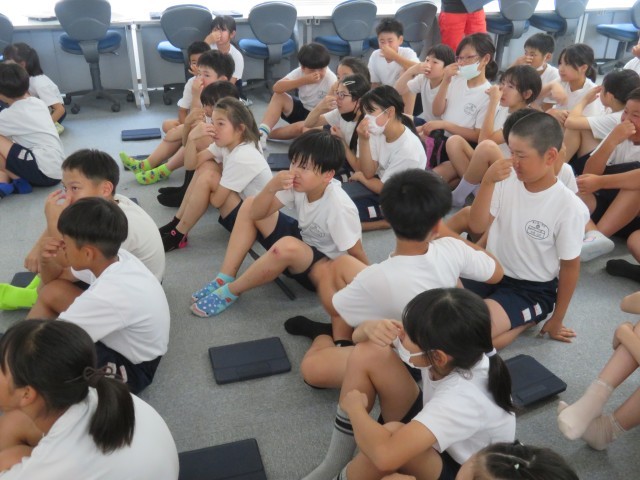 7/7 学校保健委員会(2) 公開日 2025/07/07 更新日 2025/07/07 できごと 「けがの原因」、「けがを防止するには」、「自分でできるけがの手当」について、クイズをとおして考え合いました。 たくさんの発見がありました。保健委員の皆さん、とても分かりやすい説明でした。