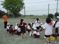 4年生は50m走の測定をしていました。久しぶりにタイムをはかるので、少し緊張して...