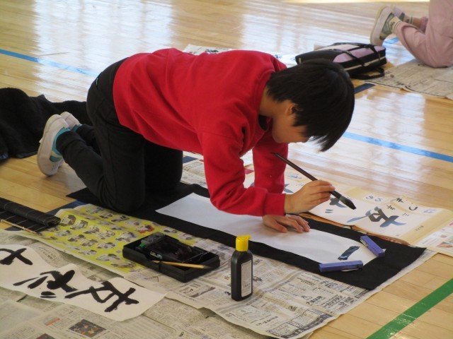 3.4年生は体育館で【書き初め大会】を行いました。ピンと張り詰めた冷たい空気の中...