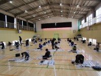 5.6年生も体育館で行いました。こちらもみな真剣そのもの。納得できる字を書こうと...