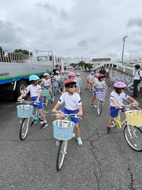 雨で延期になっていた「3年自転車安全教室」ですが、今回は天候にも恵まれ、爽やかな風が吹き抜ける「かぶら自動車教習所」を会場に、美九里西小学校3年生と合同で行われました。今日の学びをいかして、安全に自転車に乗ってほしいと思います。ご家庭でのご協力をお願いします。