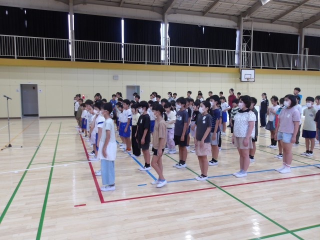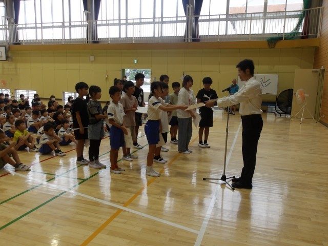 朝は体育館で2学期の学級役員の【任命式】を行いました。3~6年生の学級役員が前に出て、校長先生から【任命書】をいただきました。さらによいクラスになるように、東小っ子全員で2学期もがんばっていきましょう!