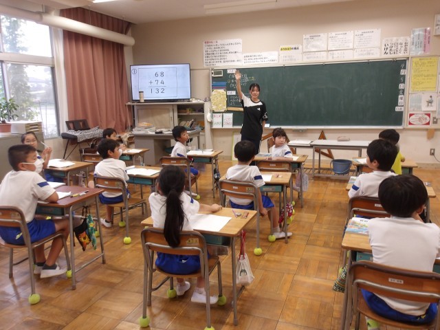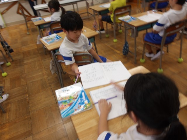 2桁の計算の復習です。くり上がりがあったので、答えが100より大きくなりました。工夫して計算する式や、問題文を読み取って式を立てることにも取り組んでいました。どんどん内容が難しくなっていきます。お家でも復習できるとよいですね。