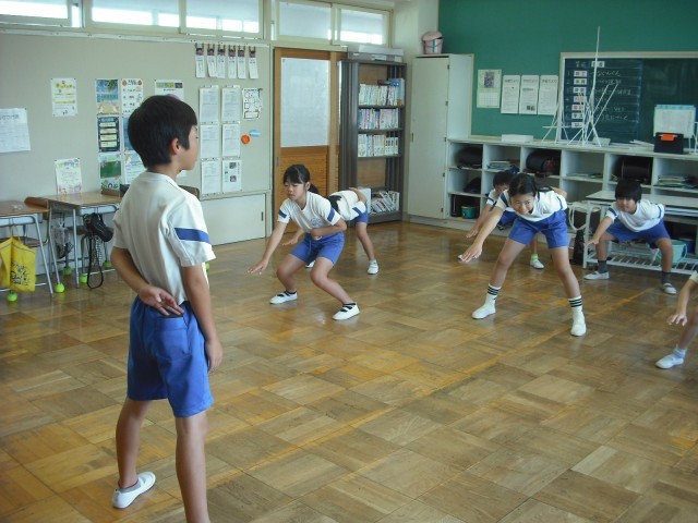 4年生が運動会の【表現】を先に覚えたので、今日は3年生に教える時間になりました。映像を見ながら、4年生が踊りのコツを教えています。3年生も一生懸命にやり始めました。力強い【表現】が見られそうです。
