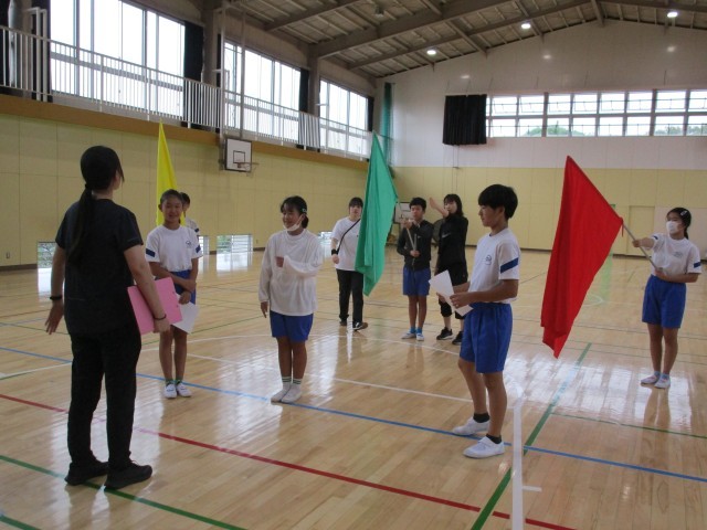 10月になり、休み時間も使いながら運動会に向かっていきます。今日は団長、副団長が【開会式】の練習です。大きな声で宣誓を合わせる練習をしたり、団旗を持つ練習をしたりしていました。