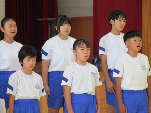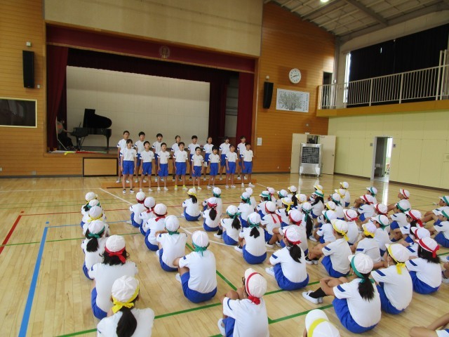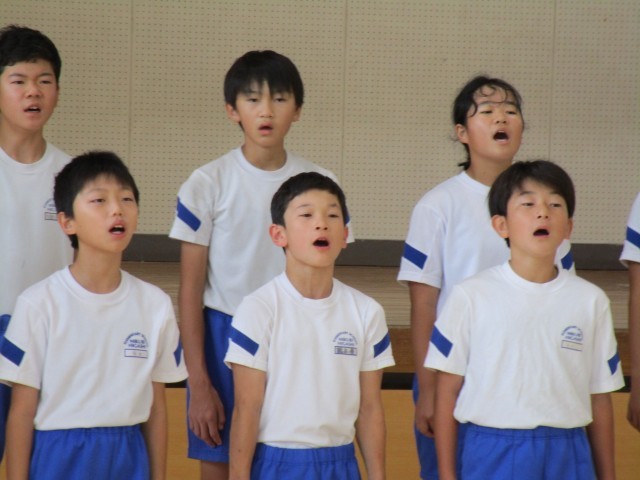 1学期から練習してきた合唱を披露しました。一人ひとりが大きな口を開けて、一生懸命に歌っていました。卒業式はまだまだ先ですが、向かう先はそこが本番です。6年生の姿を下級生がじっと見つめていました。