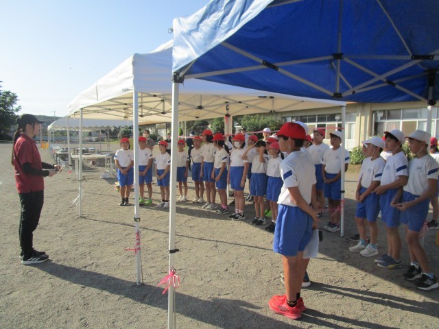 5.6年生は明日のために会場準備をしました。積極的に仕事を探して、一生懸命に動き、運動会会場が整いました。さあ、いよいよ明日が本番です。【チーム一丸 かがやけ 最高到達点へ】