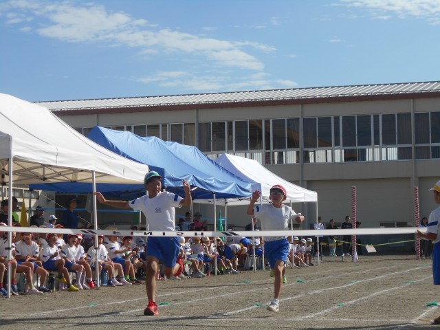 最初は【徒競走】です。低・中・高にわかれ、それぞれの距離を仲間と全力で競走しました。