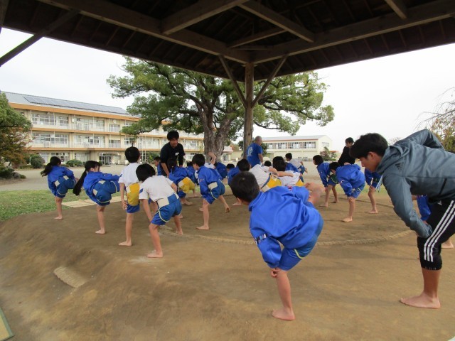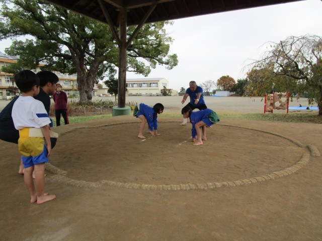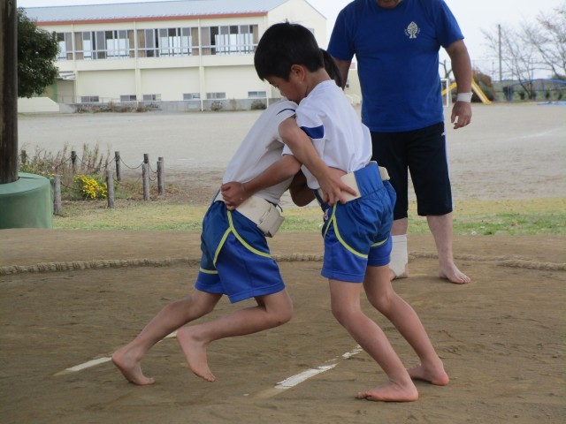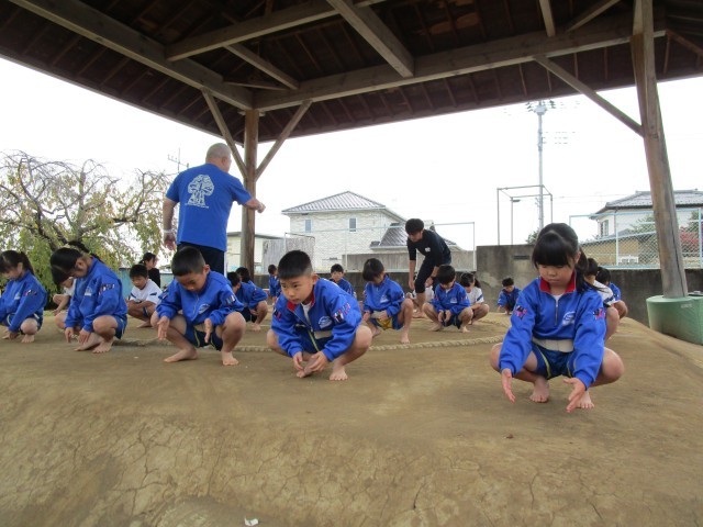 2回目の【すもう】です。前回教えてもらったことをしっかりと復習して、最後は取組を行いました。先生に教えてもらったことを一生懸命にやろうと頑張る姿がたくさん見られ、どんどん相撲らしくなっています。今日も大きな声を出して元気よく取り組めていました。