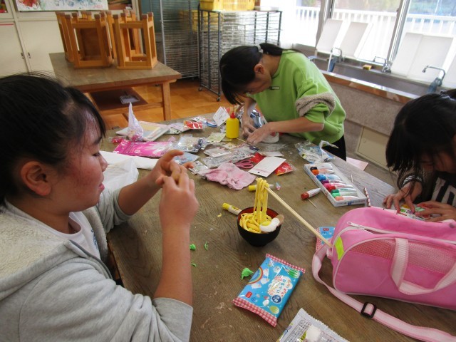 それぞれのクラブでみんな楽しそうに活動しています。かるたクラブは今日は【百人一首】です。上の句を読むととれる子が何人かいてびっくりしました。図工クラブは紙粘土で自分の好きなものを作っています。ラーメン、ピーマンの肉詰め、クリスマスケーキ、お寿司などおいしそうなものが並んでいました。