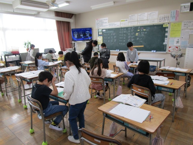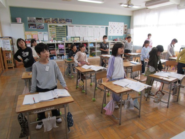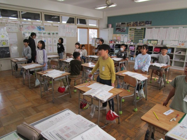 今日は【9の段】のかけ算の学習です。大きな数になってきました。間違いやすい式もあるので、とにかく言って書いて覚えることが大切です。その後は文章問題に取り組みました。式を立て、答えをほとんどの子が得意そうに書いていました。
