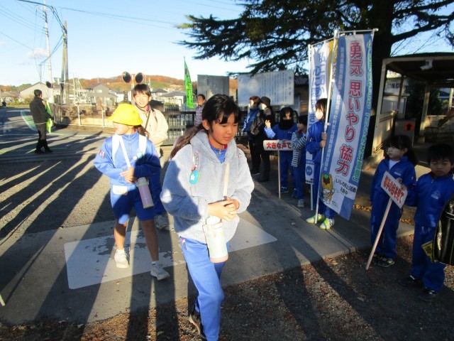 あいさつ運動4日目です。今日は今までの中で一番寒い朝となりました。でも、東小っ子は元気です。持久走記録会ということもあり、みんなやる気満々で登校してきました。