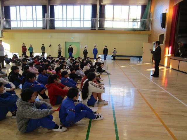 先週までの人権学習旬間のまとめを全校で行いました。各学年から代表者が出て、この2週間取り組んできたことの感想を発表しました。校長先生からは【地獄の長いはし】のお話がありました。人権学習旬間は終わりましたが、このあとも自分と周りの人を大切にしていけるとよいですね。