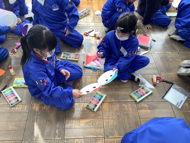 自分の好きな色でサンタさんの帽子や服を作りました。もうすぐクリスマスです。サンタさんがやってきて、すてきなクリスマスになるといいですね。
