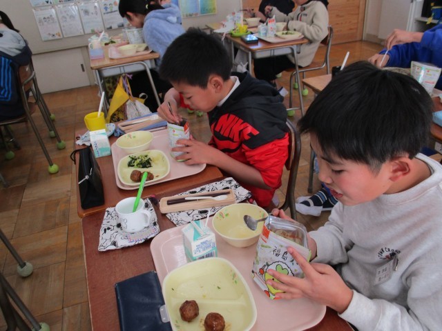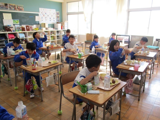 水を入れてつくっておいた【アルファ化米】が給食の時間に合わせて、できあがりました。給食のおかずと共に東小っ子は、パクパクもりもりいただきました。