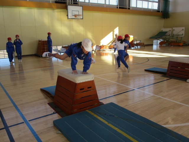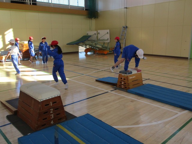 跳び箱に向かって、挑戦しています。3~6段までの跳び箱を【開脚跳び】で跳びました。何度も跳んで上手になってきています。