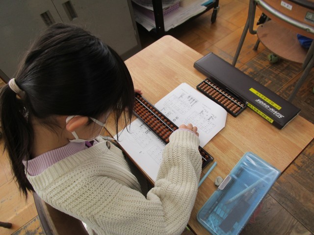 地域のそろばんの先生に来ていただき、そろばんの学習に取り組みました。そろばんの歴史やそろばん自体をどう使うのか、丁寧に教えてもらいました。指の使い方もだんだんとできるようになり、そろばんを使ってたくさん計算をしていました。