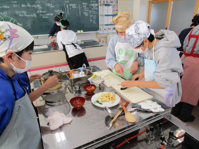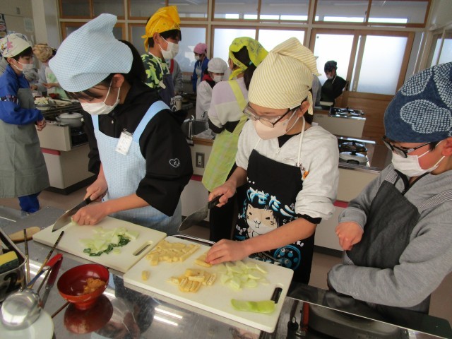 お米をといだり、野菜を切ったり、分担しながら作業をしていました。お米はお鍋で炊くのでしっかりと水の量を計って入れることが必要です。野菜も包丁を使って恐る恐る切っていました。さて、おいしいごはんとみそ汁ができたでしょうか?
