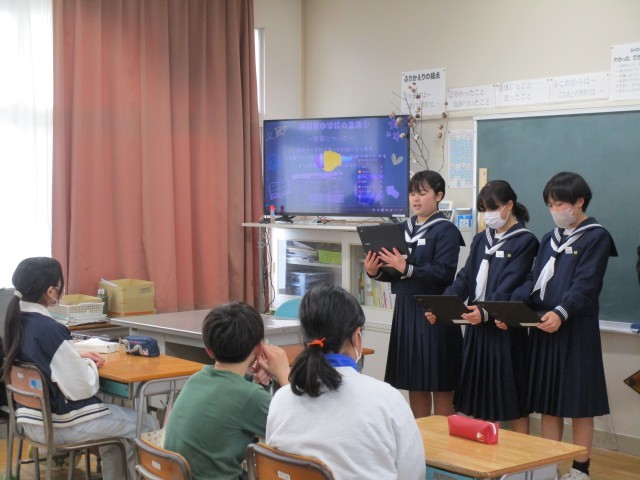 東中から5名の本校卒業生がやってきました。6年生に向けて中学校での生活を話してくれ、6年生たちも興味津々に聞いていました。5名の卒業生も有意義な中学校生活を送っているようです。