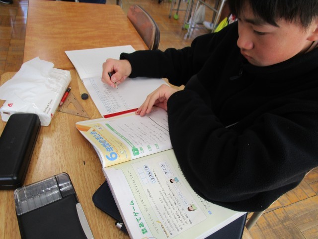 6年生の算数は今までの復習に入っています。今日は【整数や小数のしくみを思い出す】というめあてで、教科書の問題に取り組んでいます。これまでやってきたことを思い出しながら、問題を解き、きちんとできるような力をつけて中学生になれるようにがんばりましょうね。