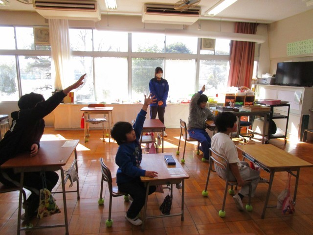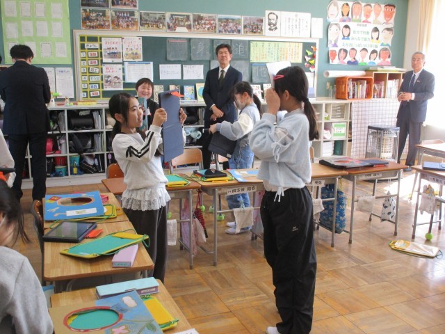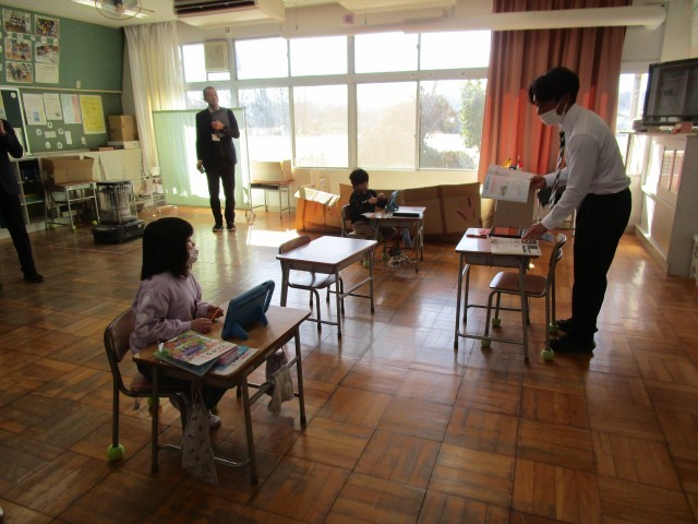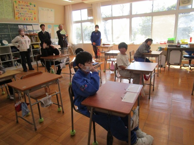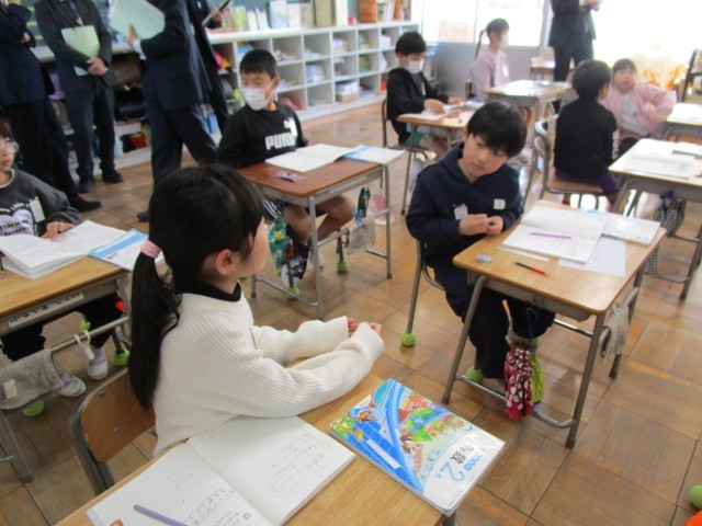 市教育委員会の方に授業の様子を見てもらいました。「とても元気がよく、活気があって、学びたい気持ちがいっぱいですね。」とおっしゃっていただきました。