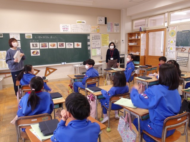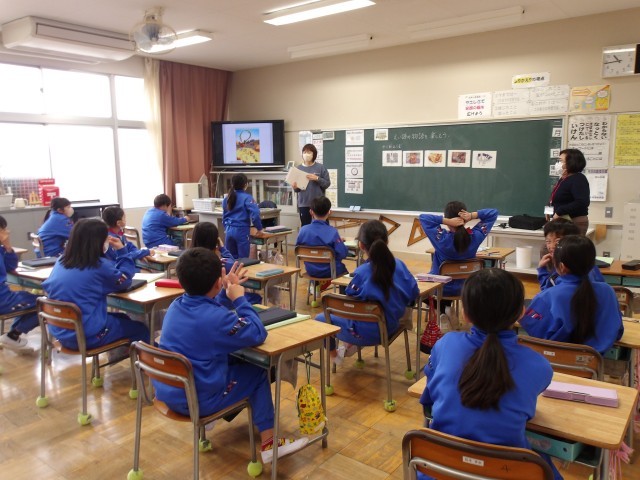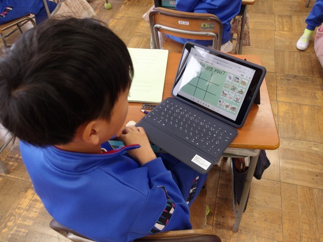 英語の授業では、十二支の物語に出てくる動物を英語でなんと言うのかを学んでいました。最後は物語の中に出てくる動物から好きな動物を自分で選び、ビンゴゲームをしていました。
