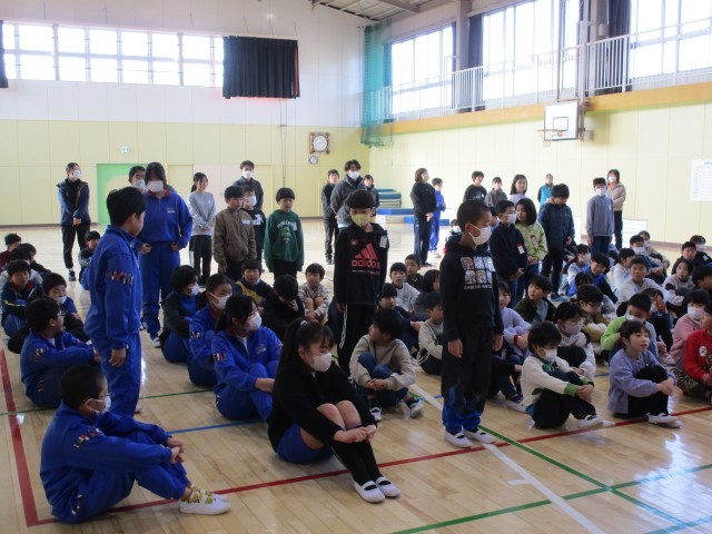 小中書き初め・図工展などの表彰をしました。たくさんの東小っ子の作品が【ふじまる】に飾られていましたね。展示された東小っ子全員が名前を呼ばれ、6年生の代表が校長先生から賞状をもらいました。