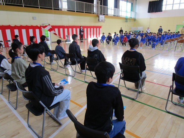 続いて5年生からたてわり班の6年生にみんなで書いた手紙を渡しました。6年生、みんな一生懸命書いてたので、あとでゆっくり読んでくださいね。