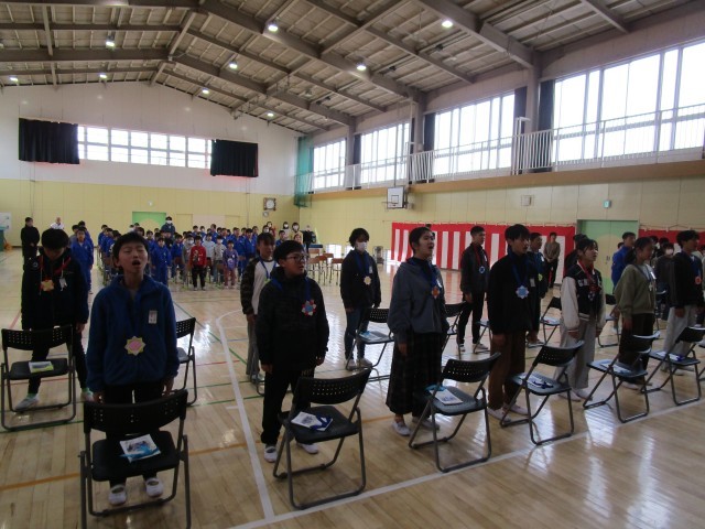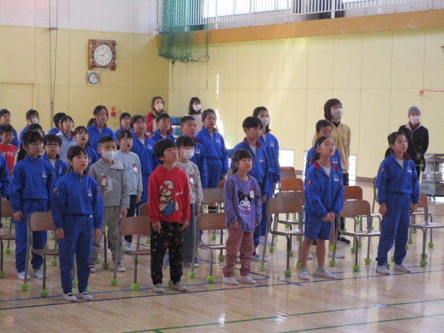 最後は全員で校歌を歌いました。思いのこもった校歌が体育館に響いていました。
