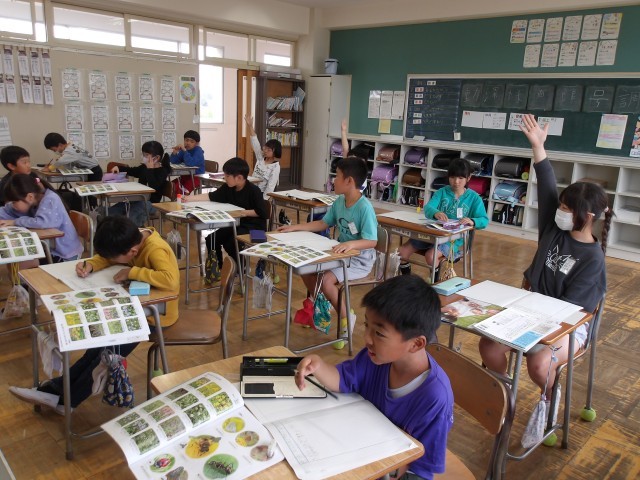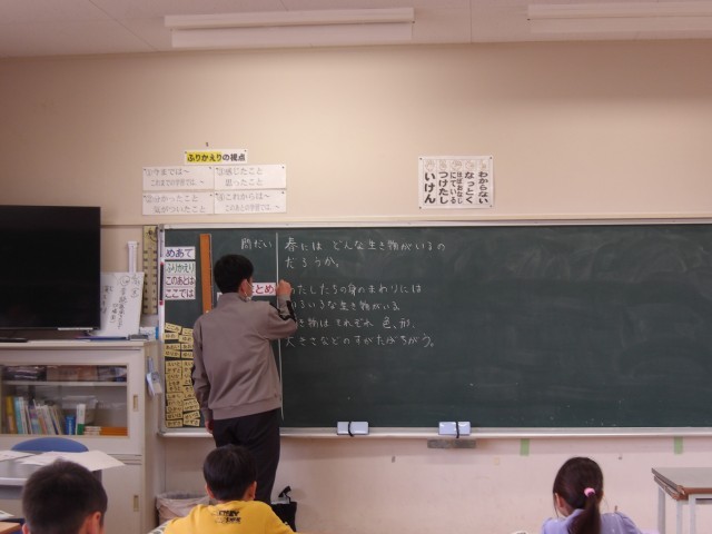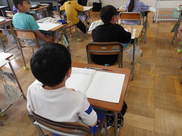 今週のはじめに、校庭に出て、生き物を見つけに行きました。それぞれが見つけた生き物を比べて、生き物の種類によって、大きさや色などが違うことに子どもたちは気付きました。しっかり観察してわかったことを文章でまとめることができました。