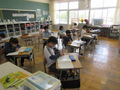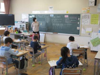 3年生は、教室で算数の学習でした。掛け算の学習です。だんだんと難しくなっていきますね。