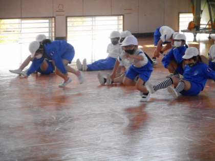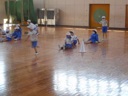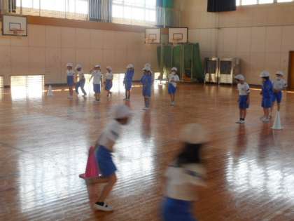 2校時に2年生が体育館において体育の授業を行っていました。基本的な動きを行い運動量を高めていました。