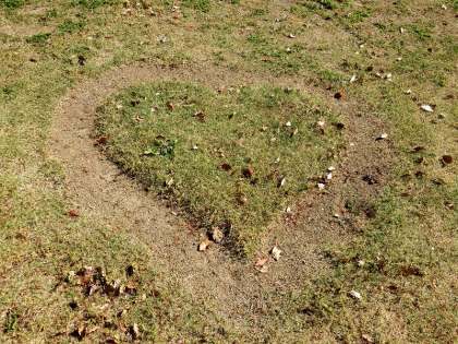 実は、業務員の岩崎さんが、芝の刈り込みの時に、わざわざハート型に残してくれているんです。素敵ですよね。