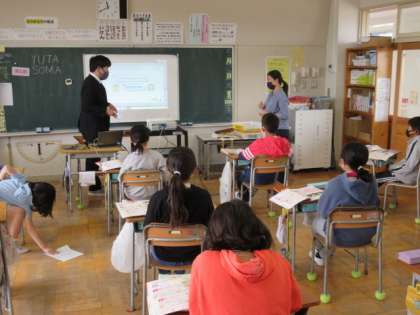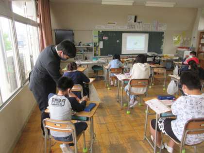 5月12日(水)授業風景〜4校時5年英語〜 公開日 2021/05/12 更新日 2021/05/12 できごと 今年度も5・6年生の英語の授業は、東中より英語の先生が来て、授業をしています。さらに水曜日は、ALTのビビアン先生も加わります。今日の授業は、英語で名刺を作って交換するという内容でした。