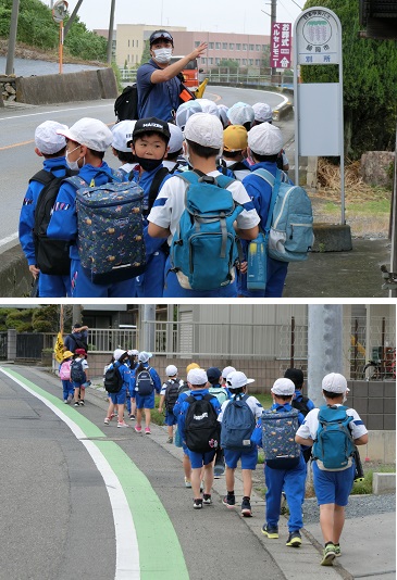 本日2校時から3校時にかけて、2年生が生活科の授業の一環で「まちたんけん1」にでかけました。学校を出発し、本郷団地から土師神社を回って、学校に帰ってくるコースでした。天候も心配されましたが、なんとか本降りになる前に帰ってこられてよかったです。