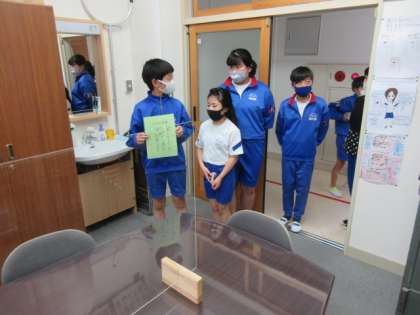 今日の昼休みに、児童会役員の皆さんが校長室に今月の生活目標を知らせに来てくれました。そして持ってきた生活目標の用紙を校長室内と廊下に貼ってくれました。「暑くなってきたので水分補給をしよう」という熱中症予防の目標です。みんなで気を付けていきたいものです。