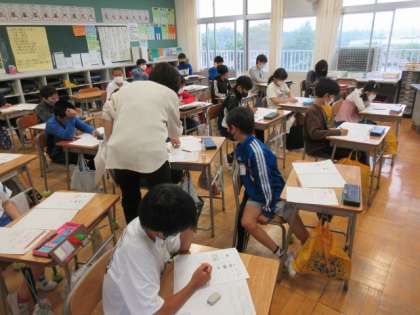 6年生も算数で問題を解く練習を行っていました。なかなか6年生ともなると難しい問題を解いています。