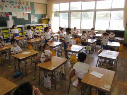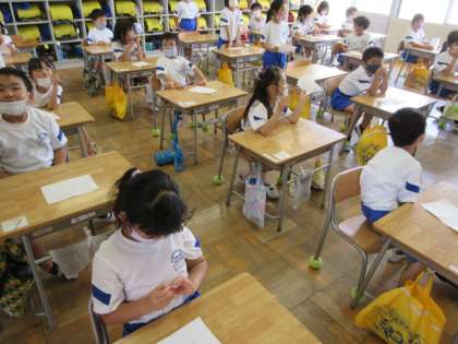 一年生は生活科の授業で、先日校長室に来て校長にインタビューした結果をみんなで発表していました。これだけたくさんの質問の結果を発表されると、どんな校長なのか、イメージが出来上がりますね。ちょっと照れた参観でした。(校長)