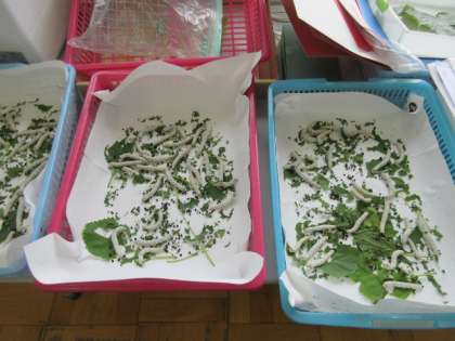 6月11日(金)授業風景〜5校時3年総合〜 公開日 2021/06/11 更新日 2021/06/11 できごと 3年生は総合の学習でカイコについて調べています。実際にカイコを飼育しているのですが、だいぶ大きくなってきてえさのたべが大変よくなってきました。今日は校門付近にある桑の木に餌となる葉をとりに来ていました。