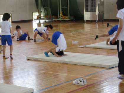 6月15日(火)授業風景〜3校時3年体育〜 公開日 2021/06/15 更新日 2021/06/15 できごと 3年生が体育館で体育の授業を行っていました。マット運動です。だんだんと上手になっていく様子が垣間見えました。